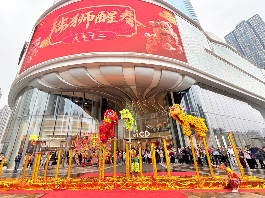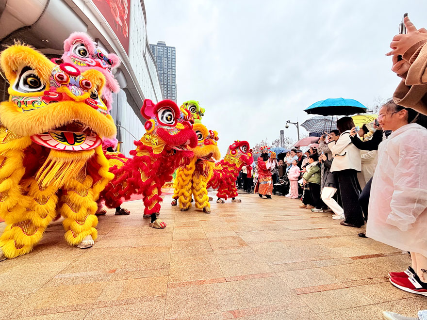 醒狮迎春腾跃采青,财神派发好运红包,开年复工活动更是引发众多顾客到场围观互动,迎接新年好运。